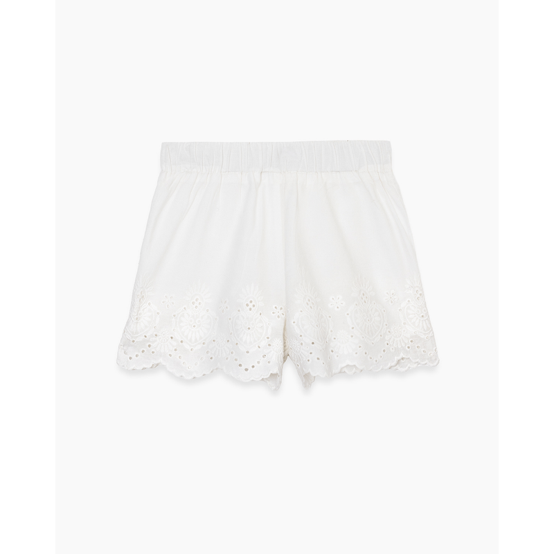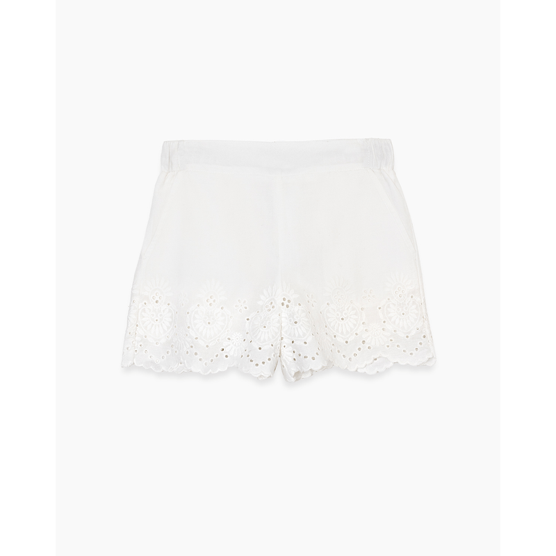 Short confeccionado en voile bordado de algodón. Posee cintura con elastico inerno y bolsillos laterales. Ruedo bordado y calado. Calce relajado, tiro medio. Nos encanta combinarlo con el top Laurence para hacer match y completarlo con la campera Allegra para un total look.