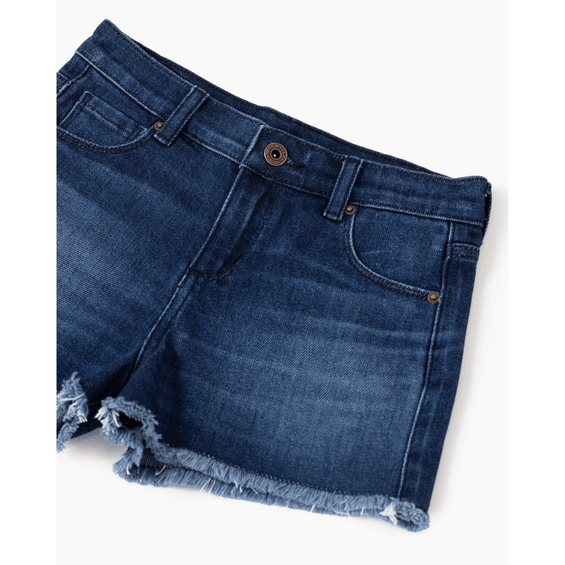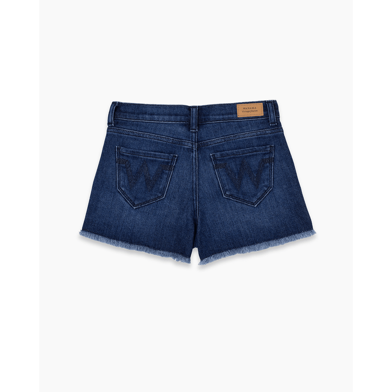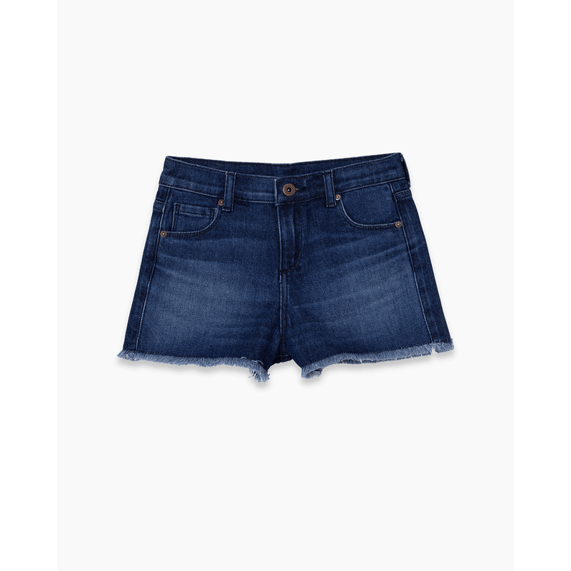 Short cinco bolsillos confeccionado en jean confort. Posee presillas en cintura y acceso a la prenda mediante cierre y botón metálico. Cintura con elástico con ojal interno hasta talle 8 inclusive, que se ajusta mediante botones. Calce relajado. Alegorías bordadas. Lavado oscuro. Es un ítem ideal para armar tus looks este verano.