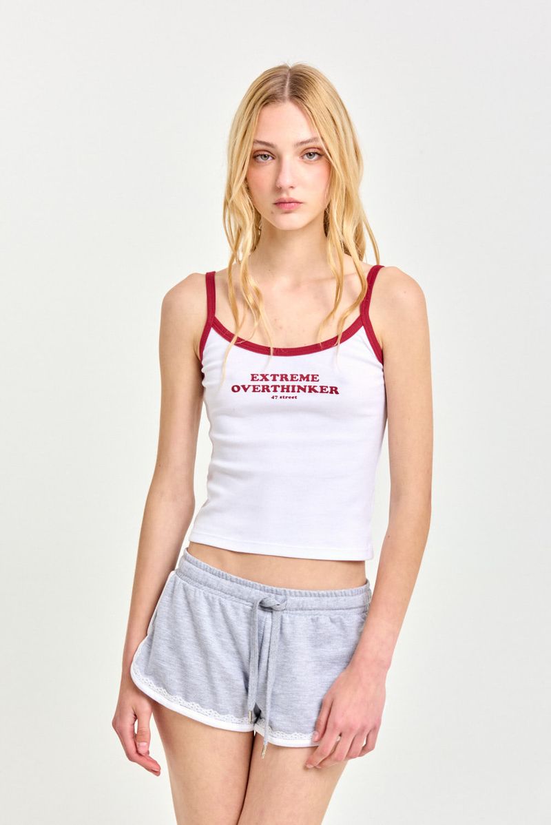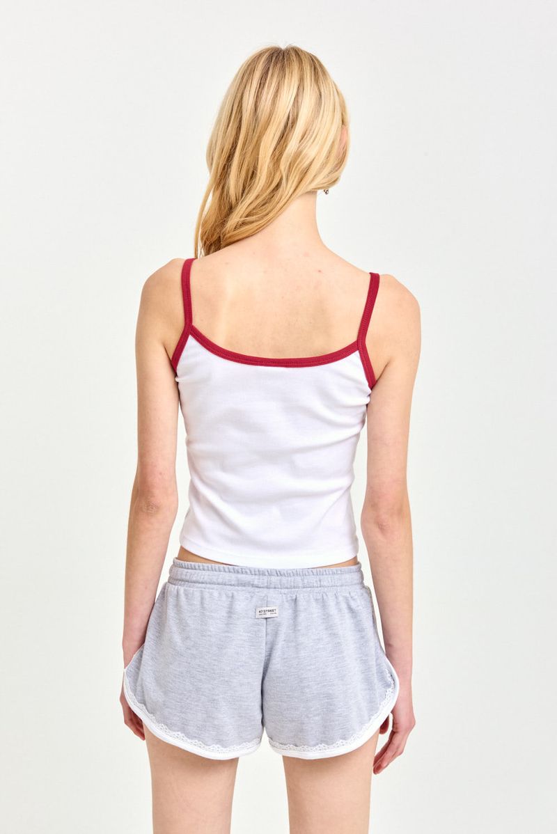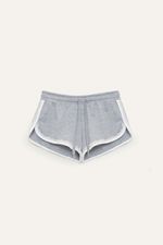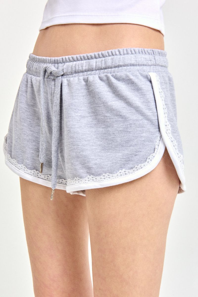 Short de rústico liviano con cintura elastizada, vivos a contratono y detalle de puntilla. Cordón chato a tono en la cintura y etiqueta tejida en la espalda. De textura liviana y suave, combina estilo deportivo con un toque delicado.