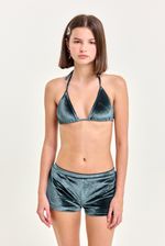 Short con cintura elástica y tiro bajo, confeccionado en tejido tipo terciopelo que aporta textura y suavidad al tacto. Lleva chapita marcaria en espalda. Perfecto para outfits cómodos y con estilo.