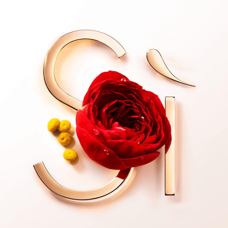 - ROSA DAMASCENA Y DAVANA: en el corazón se encuentra el absoluto de rosa damascena, que revela las facetas más ricas y atractivas de la rosa y crea el efecto denso y agradable de la fragancia. Este se combina con las notas de aceite esencial de davana, cuya nota aterciopelada y afrutada aumenta la sensualidad floral intensa de SÌ eau de parfum.