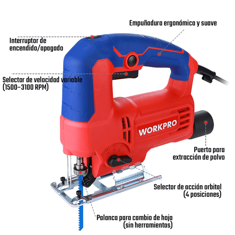 Sierra Caladora Workpro 710w Corte Accesorios Cambio Rapido (WP471000NT)
