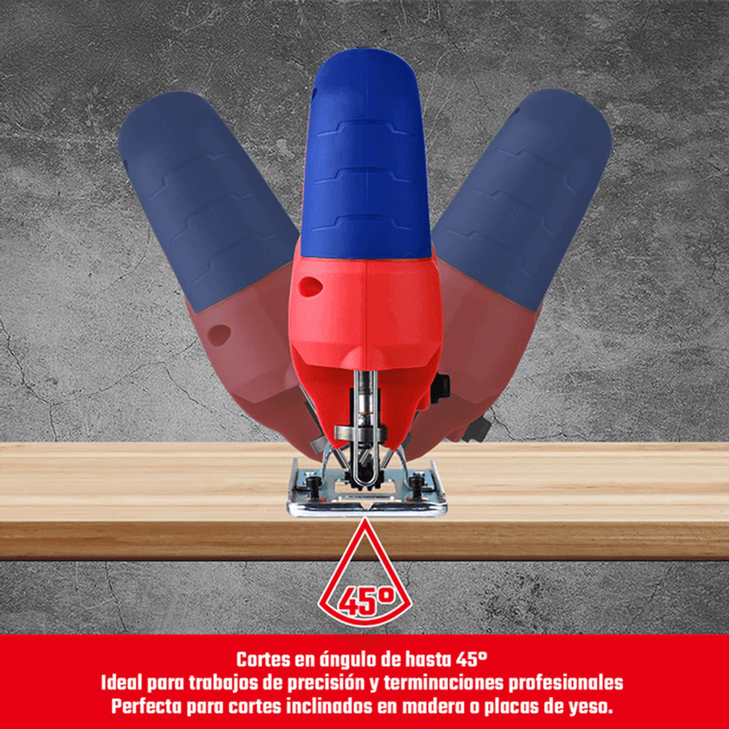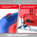 La sierra caladora WORKPRO de 710W está diseñada para realizar cortes rectos y curvos en diferentes materiales con precisión y potencia. Su motor de 710W alcanza una velocidad variable de 1000 a 3100 rpm, lo que permite adaptarse al tipo de material y necesidad de trabajo.