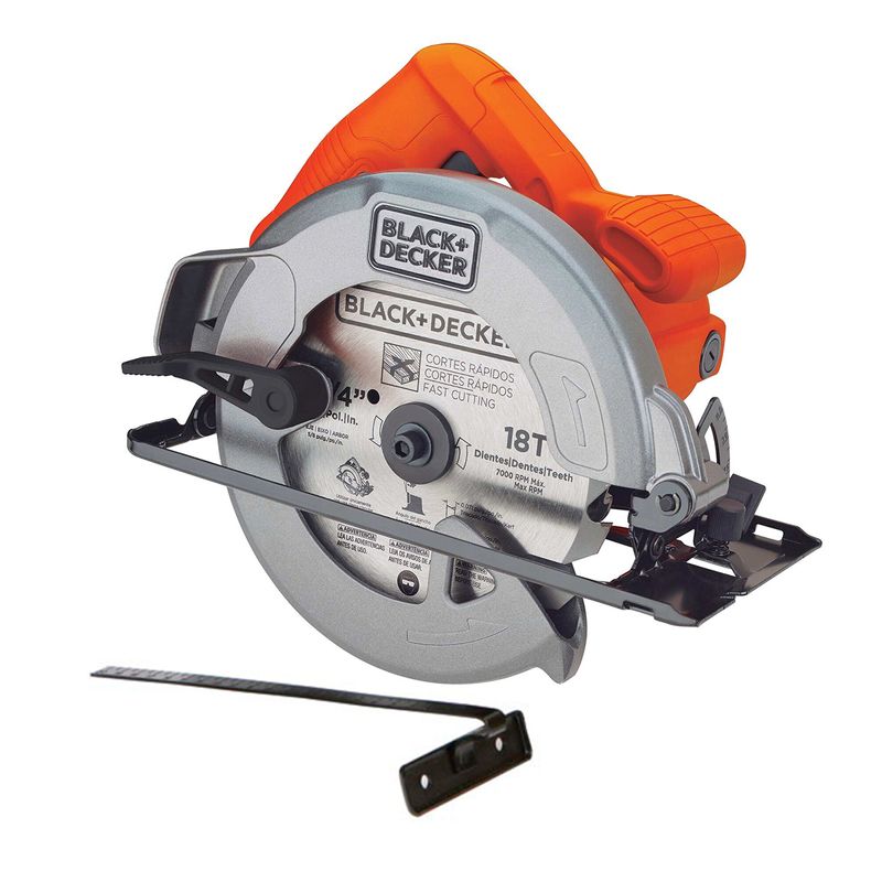 (1) Sierra circular, (1) disco de corte de 18 dientes con carburo de Tungsteno y (1) guia paralela.