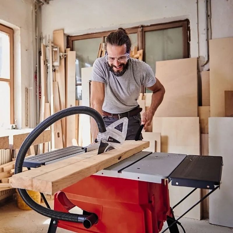 La sierra circular de mesa Einhell TC-TS 2025/2 U es un potente aparato con el que los ambiciosos aficionados al bricolaje pueden trabajar con madera maciza, tableros de fibra y muchos otros materiales similares. Se suministra con una hoja de sierra de precisión con punta de carburo, cuya altura y ángulo pueden ajustarse fácilmente con una sola mano mediante el ajuste de la hoja de sierra 2en1. La guía paralela mejorada facilita la realización de cortes longitudinales perfectos, mientras que el tope transversal y la hoja de sierra inclinable son perfectos para los cortes a inglete. Las extensiones de la mesa amplían adicionalmente la superficie. La extracción de polvo en la carcasa y en la cubierta de la hoja de sierra ayuda a limpiar el aire. Para todas las herramientas incluidas, las guías, el palo de empuje y el cable son aparatos para la estiba