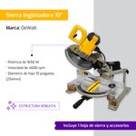 1 hoja de sierra de 10 pulgadas con 80 dientes (instalado en la maquina), llave, extensión de soporte, prensa y bolsa para polvo.