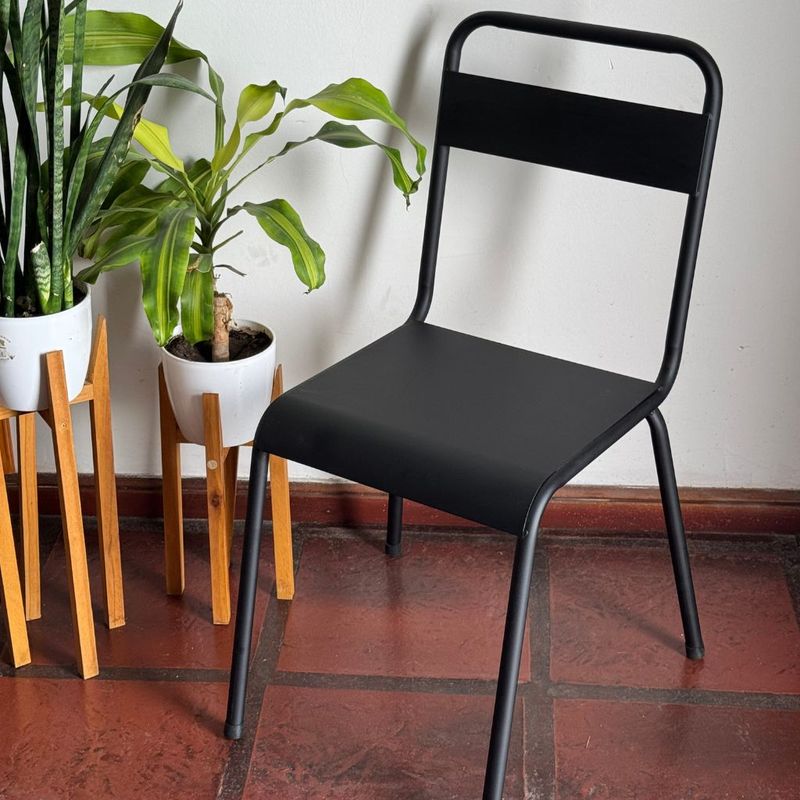 Esta silla de diseño industrial se entrega completamente armada y lista para usar. Con unas medidas de 98 cm de alto, 46 cm de largo y 50 cm de profundidad, y un peso de 4 kg, resulta fácil de transportar y mover dentro de tu hogar o negocio. Gracias a la pintura epoxi horneada, está disponible en cinco varios colores, lo que te permite elegir el tono que mejor combine con tu balcón, patio o local gastronómico. Su estructura sólida de hierro tubular de 1” y su asiento de chapa perforada ofrecen estabilidad y robustez sin perder la elegancia.