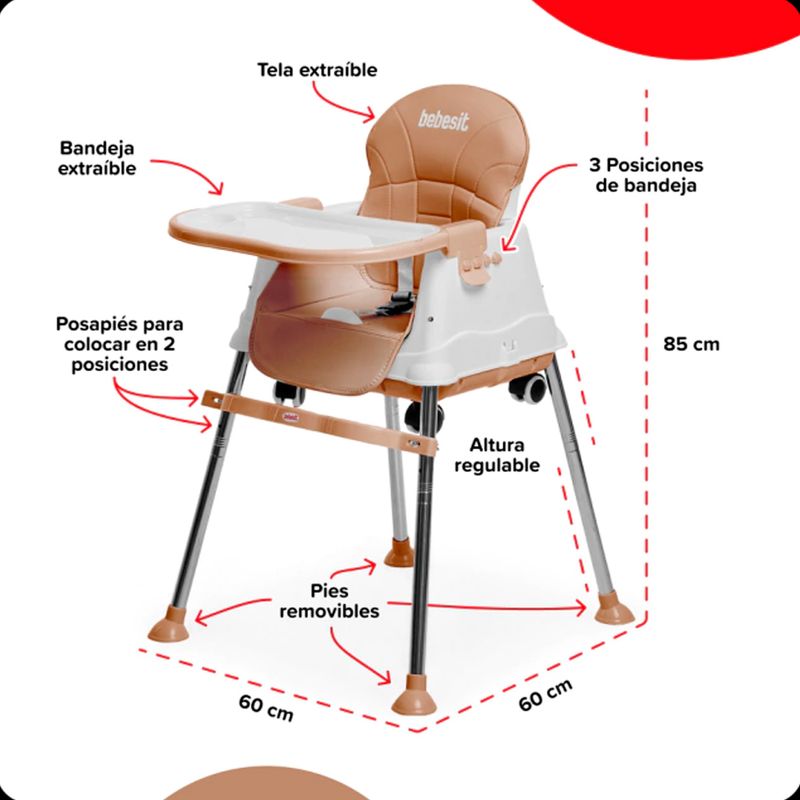 - Medidas silla alta (AnxAlxPr): 60 x 85 x 60 cm