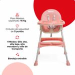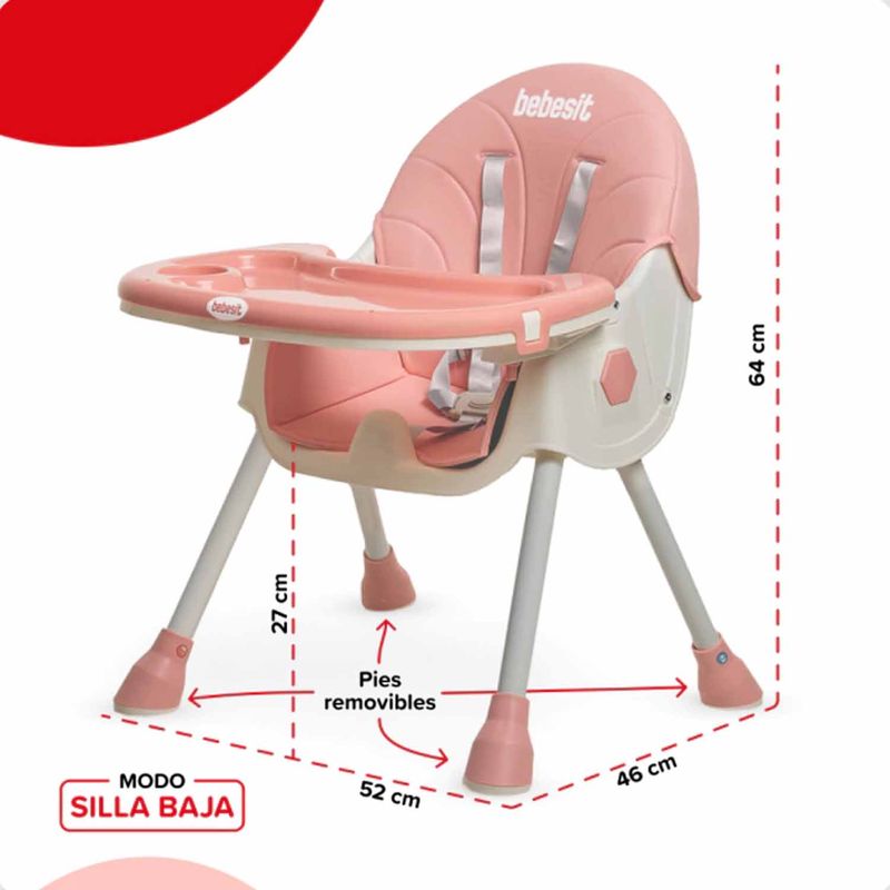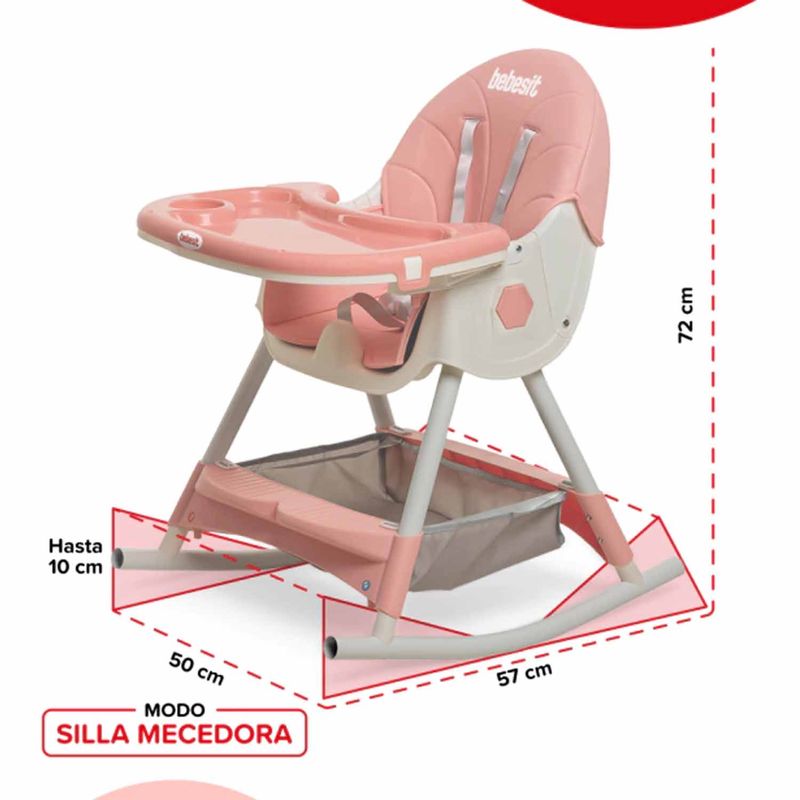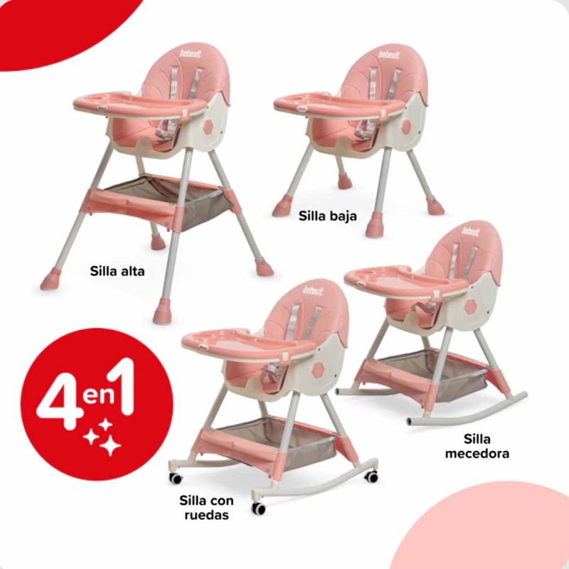 La Silla de Comer 4 en 1 Bebesit es una solución práctica y versátil para acompañar al bebé en cada etapa. Su estructura multifunción se adapta como silla alta, baja, mecedora o silla de transporte, brindando comodidad, seguridad y practicidad en todo momento.
