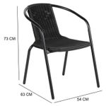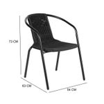 Esta silla de exterior Look es apilable, lo que facilita su almacenamiento. Tiene una altura de 73 cm y un ancho de 54 cm. Soporta un peso máximo de 120 kg y cuenta con apoyabrazos.