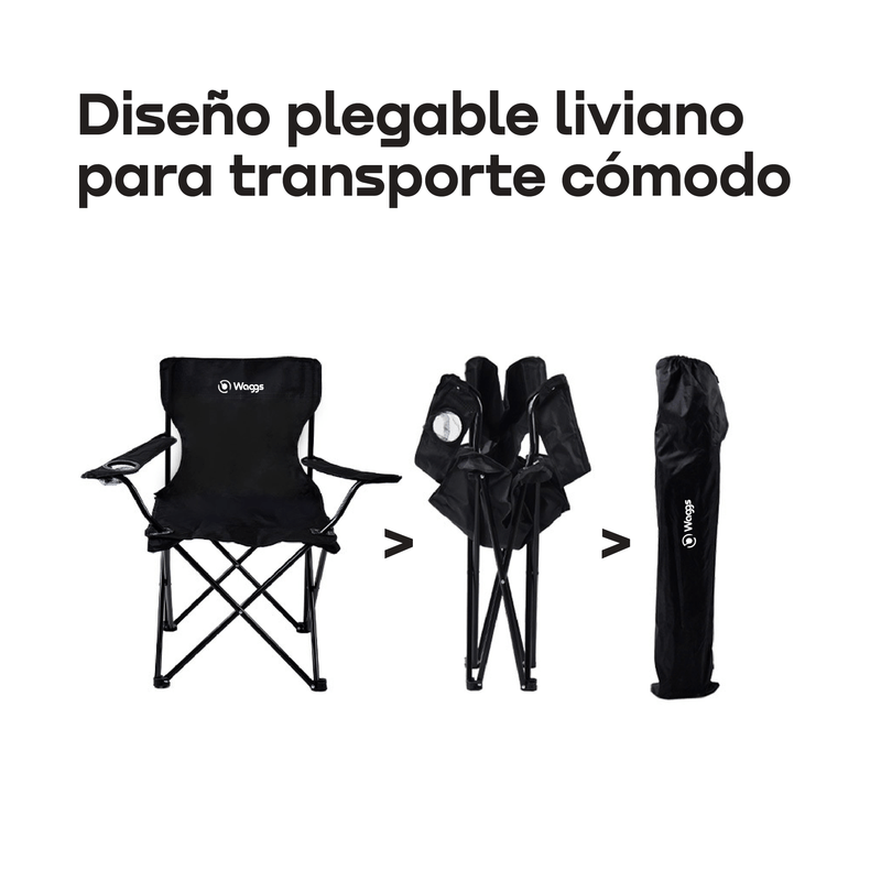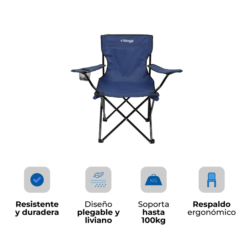 La silla director de camping WAGGS redefine la comodidad portátil con un diseño práctico y resistente para disfrutar al aire libre. Su estructura de acero tubular reforzado brinda estabilidad firme sin sumar peso innecesario. El asiento y respaldo de tela Oxford 600D aseguran durabilidad, fácil limpieza y resistencia al uso intensivo. Incorpora apoyabrazos con portavaso integrado para mayor confort y practicidad. Su formato plegable permite transportarla y guardarla sin esfuerzo, ideal para llevar a cualquier salida. Perfecta para camping, playa, pesca o jardín, es una aliada confiable para relajarte donde quieras.