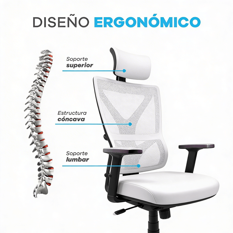* Espaldar ergonómico, con un soporte lumbar dinámico