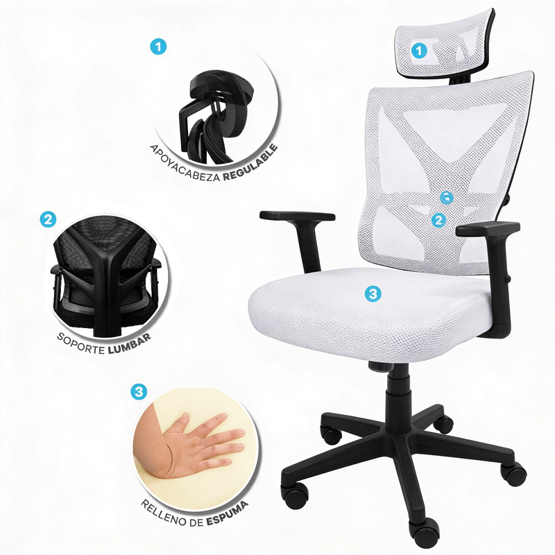 • Silla de oficina Ejecutiva ergonómica con apoyacabeza
