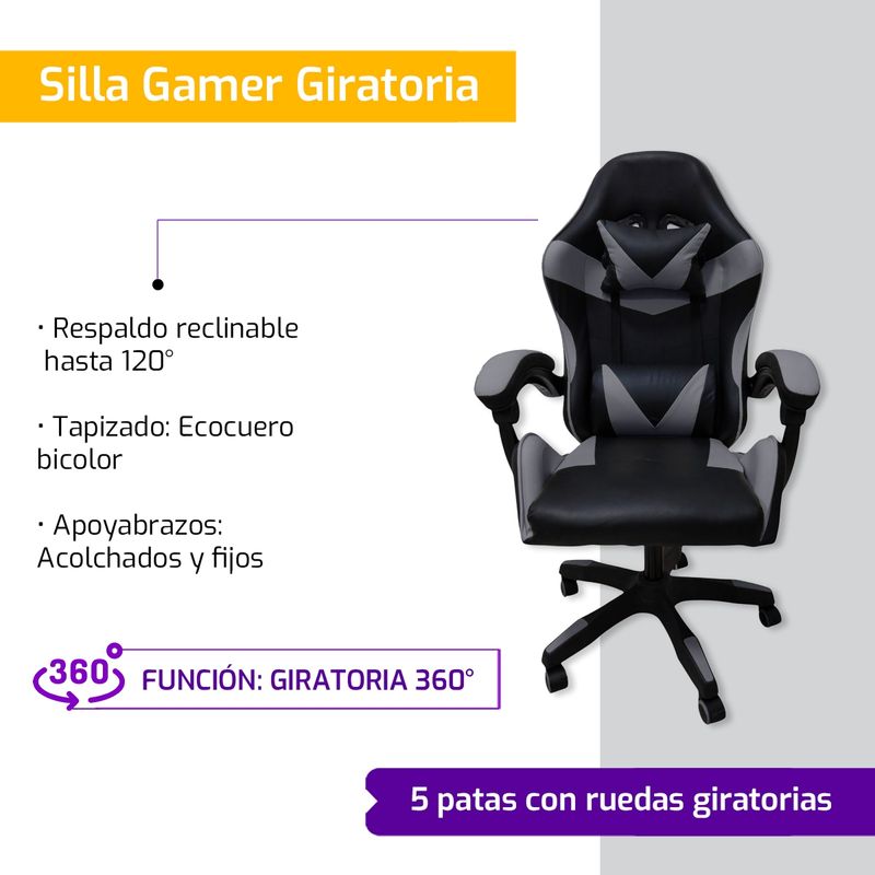 Silla Gamer Ergonómica Reclinable Giratoria