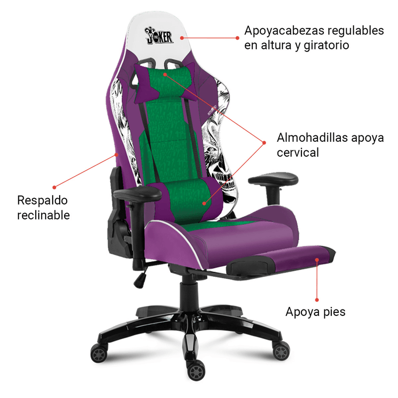 Descubrí la Silla Gamer Level Up Joker, diseñada especialmente para los fanáticos de DC Comics que buscan comodidad, estilo y durabilidad en cada partida o jornada de trabajo.