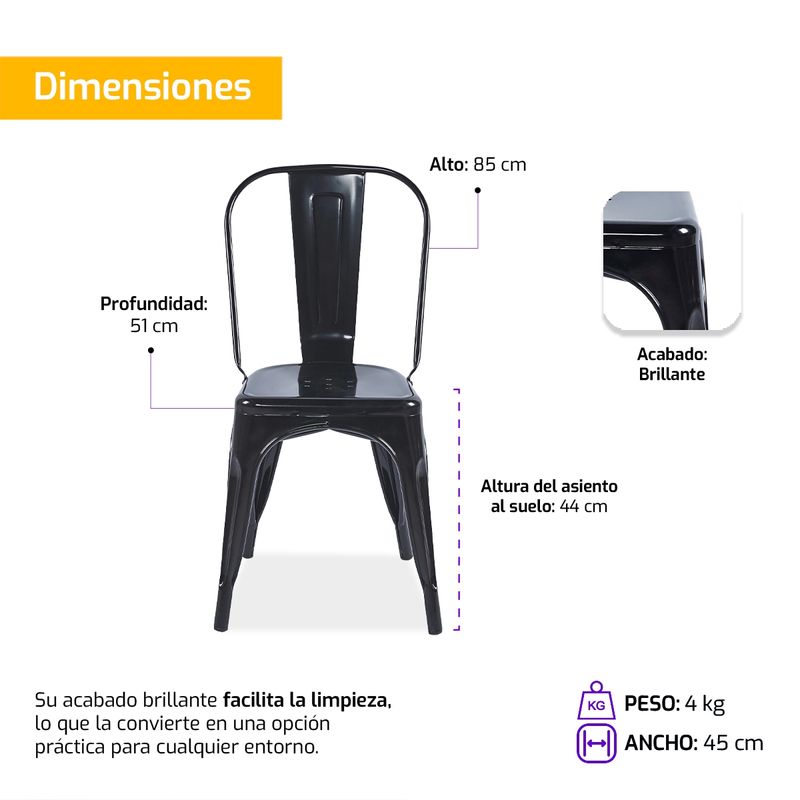 Medidas de la silla: 85 x 45 x 51 cm (Altura total x Ancho x Prof.)