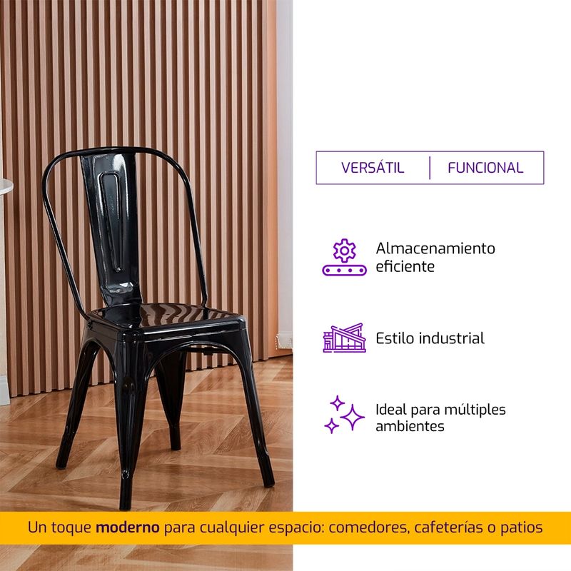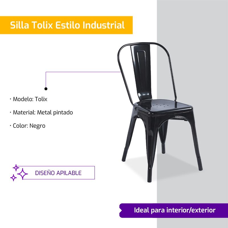 Silla Industrial Tolix Metal Interior/Exterior Negro Brillante