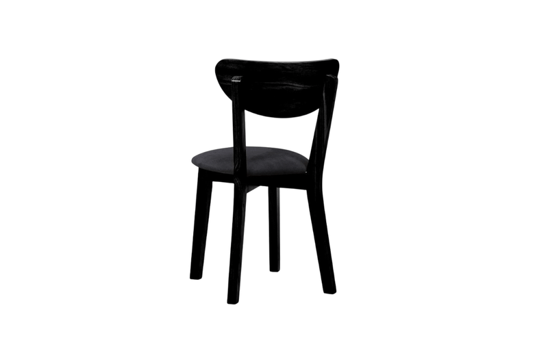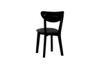Par de sillas Defrance de estilo nórdico, con estructura de madera maciza de paraíso en color negro y un cómodo asiento tapizado en tela chenille también negra. Su diseño es sencillo y funcional, e incluye un respaldo ergonómico para mayor confort.
