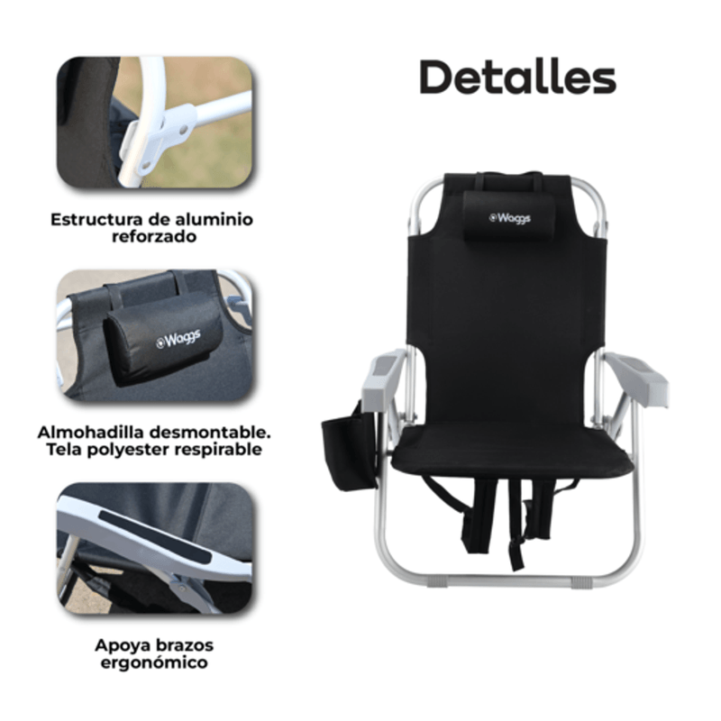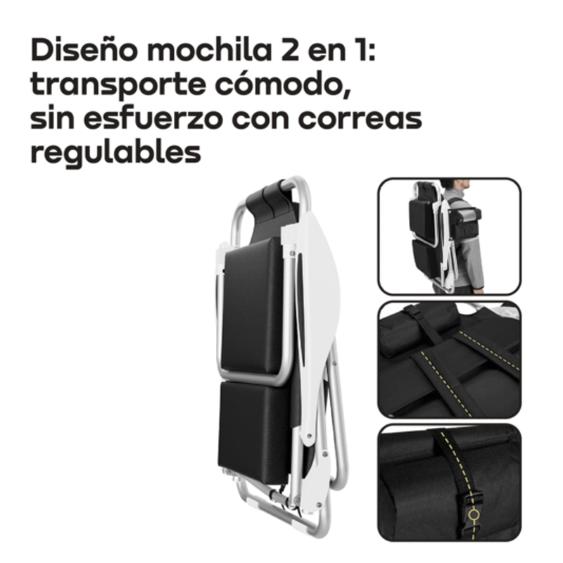Descubrí la reposera-mochila con cooler incorporado WAGGS, pensada para disfrutar al aire libre con máxima comodidad y practicidad. Su diseño convertible permite transportarla como mochila y desplegarla en segundos para relajarte donde quieras. El cooler integrado mantiene bebidas y alimentos fríos sin sumar bolsos extra. La estructura de aluminio aporta estabilidad, resistencia y ligereza para un uso prolongado. Incorpora bolsillos laterales funcionales para llevar objetos personales siempre a mano. Ideal para playa, camping o parque, combina confort real con libertad de movimiento.
