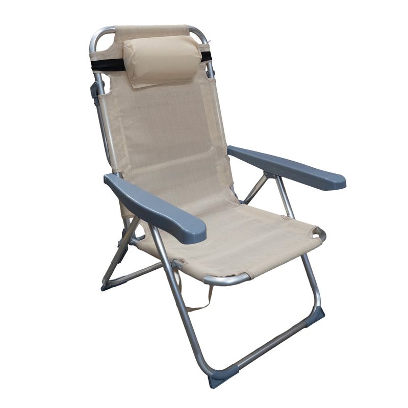 Relajate con estilo y comodidad con esta silla alta reclinable, liviana, resistente y fácil de transportar, ideal para playa, camping o escapadas al aire libre. Diseñada para quienes disfrutan del aire libre con confort, esta silla alta reclinable de aluminio combina ergonomía, resistencia y estilo. Su estructura liviana facilita el transporte sin comprometer la estabilidad, y la tela Poliéster 600D color arena aporta durabilidad y un look moderno.