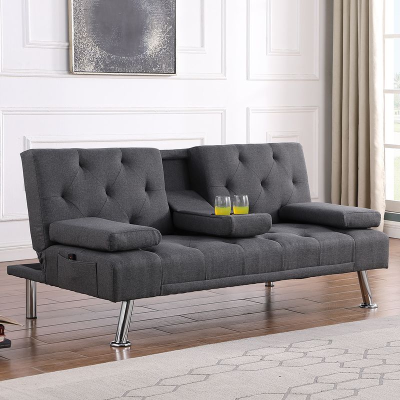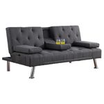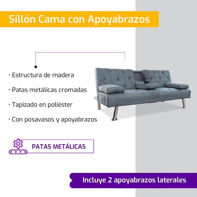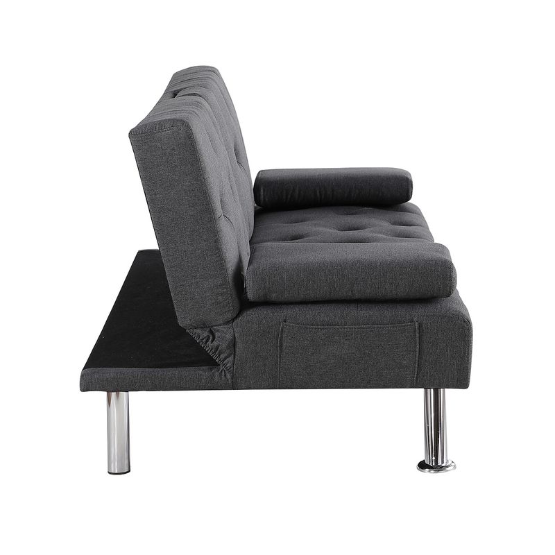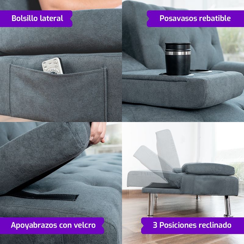 Sillón Cama Futón Con Apoyabrazos Posavasos 168x88x79cm Gris