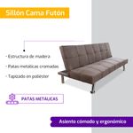 Sillón Cama Futón Madera Patas Metálicas 178x81x76cm Marrón