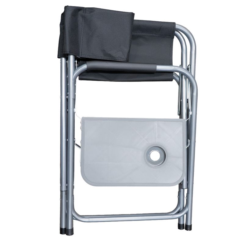 Incluye una bandeja lateral con portavaso, perfecta para apoyar bebidas, alimentos o accesorios, manteniendo todo al alcance de la mano. Su diseño plegable permite transportarlo y guardarlo con facilidad, ocupando el mínimo espacio. Una opción robusta, práctica y cómoda para disfrutar del aire libre con estilo.