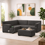 Sillon Esquinero en L 2+2 Living Box USB En Caja Lino Antimanchas. Mesa de regalo.