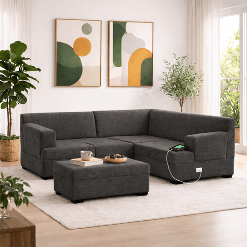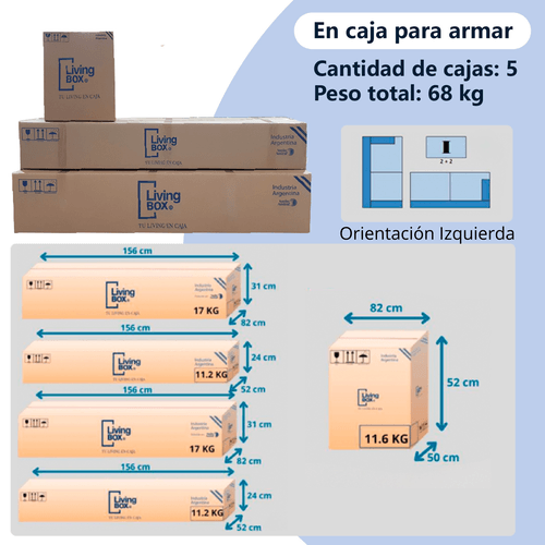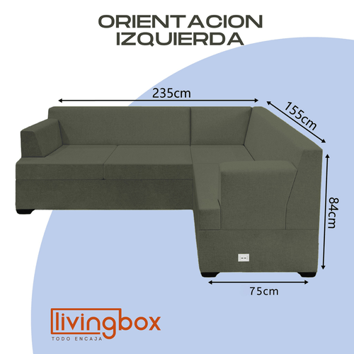 Sillon Esquinero en L 2+2 Living Box USB En Caja Lino Antimanchas. Mesa de regalo.