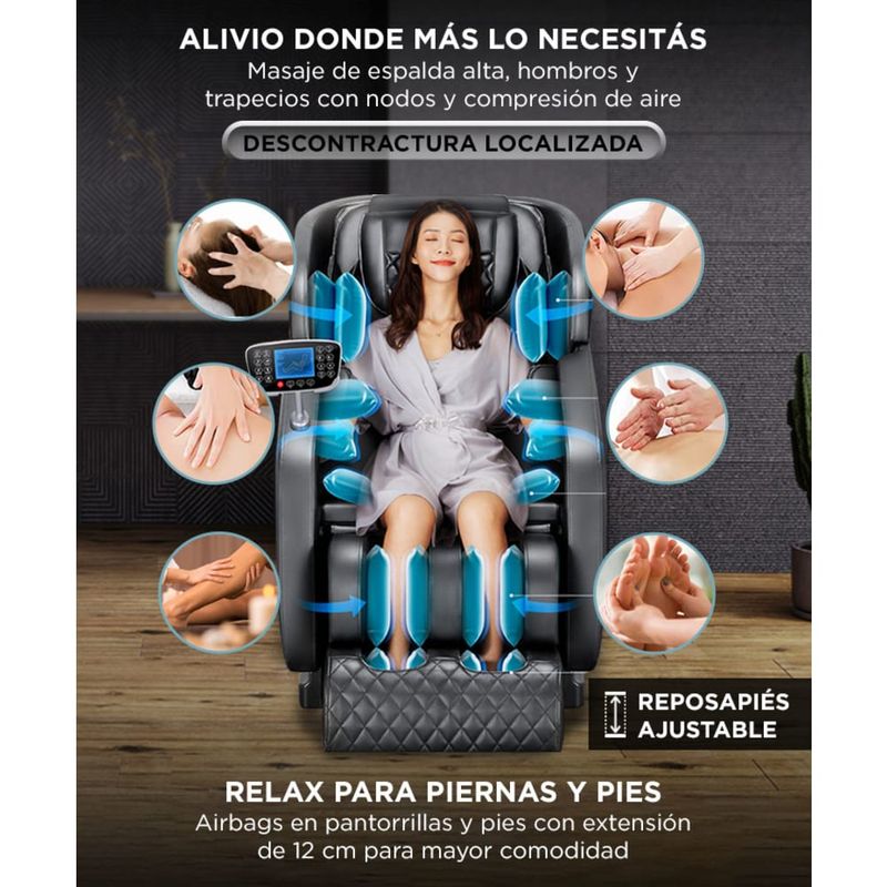 y plantas del pie. Si, eso es relajación total. Además la función Zero Gravity la cual permite que inclines el sillón a 180 grados aumentando el nivel de confort.