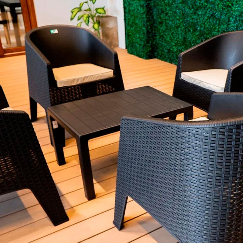 Sillón plástico estilo rattan, ideal para balcones o espacios al aire libre