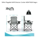 Silla de Acero ROFFT Sillón Estilo Director Liviana y Plegable de Tela Reforzada para Camping, Picnic, Playa, Pesca, Arena, Y Vacaciones, Relax Y Cómoda, con Apoyabrazos Y Apoya Vaso. Apoyabrazo térmico - cooler. Espaldar Ergonómico