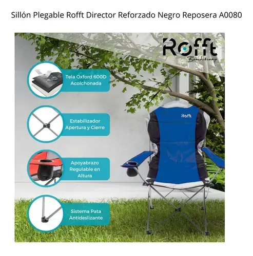 Silla de Acero ROFFT Sillón Estilo Director Plegable y Liviana con Tela Reforzada para Camping Picnic Playa Pesca Arena Vacaciones Color Descanso Relax Cómoda Apoyabrazos Apoya Vaso Incluye Bolso para Transportar Peso hasta 110kg