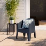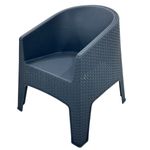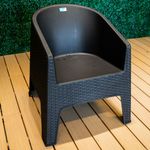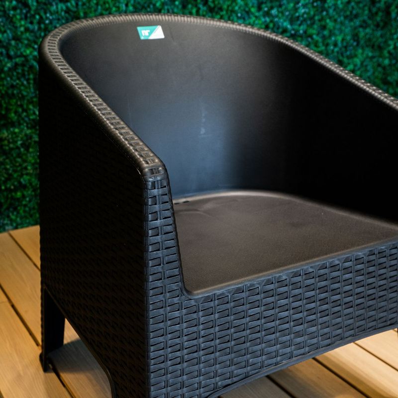 El Sillón Rattan Oasis Negro combina diseño moderno, confort y resistencia. Fabricado en plástico inyectado con textura símil rattan, es ideal para exteriores e interiores: jardín, terraza, balcón o galerías.