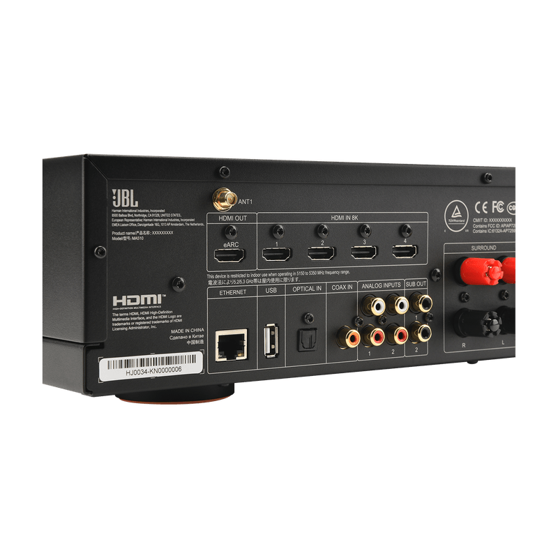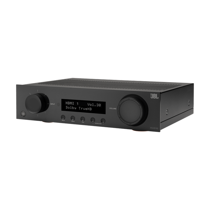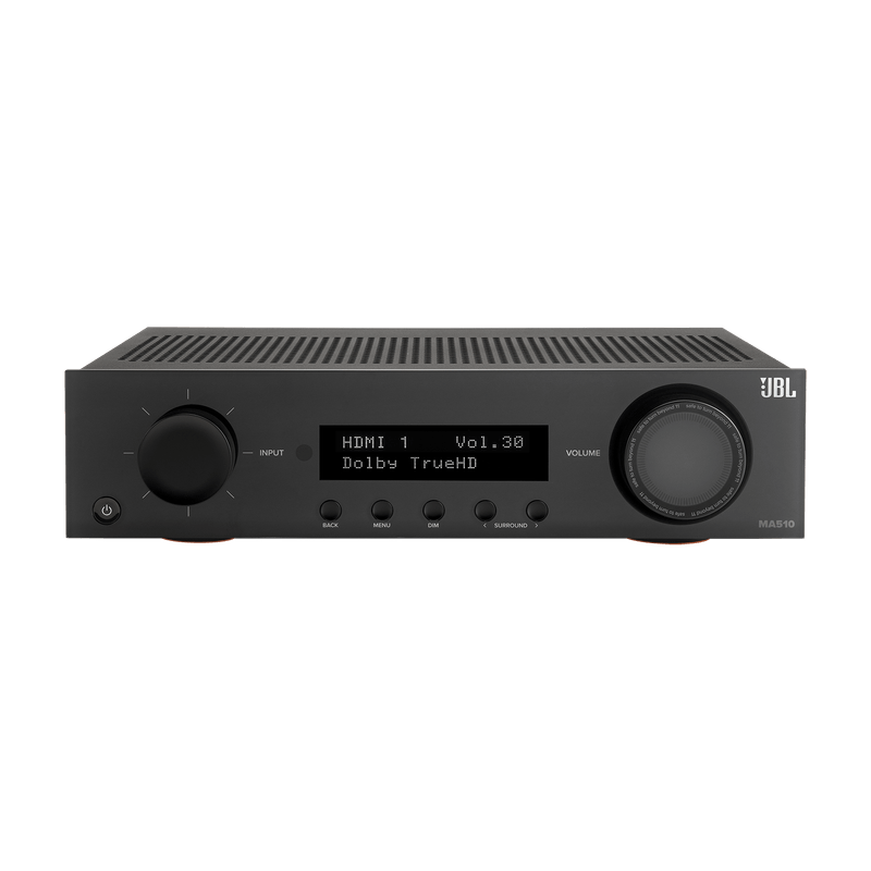 El JBL MA510 es un receptor AV de 5.2 canales diseñado para transformar cualquier espacio en una auténtica sala de cine en casa. Con soporte para video 8K gracias a sus entradas HDMI 2.1 (HDCP 2.3), permite disfrutar de una calidad visual impresionante, compatible con resoluciones de hasta 8K/60Hz y 4K/120Hz.