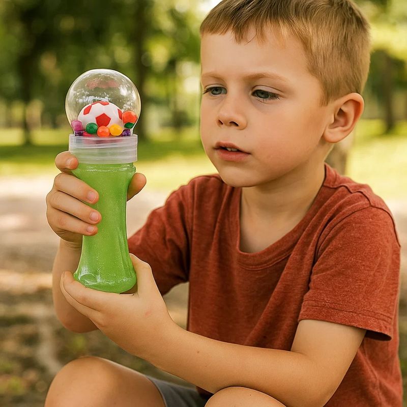 Divertite con el Slime Magic Crystal, un juguete sensorial con textura brillante, elástica y suave. Incluye un accesorio de pelota de fútbol que hace del juego una experiencia aún más divertida.