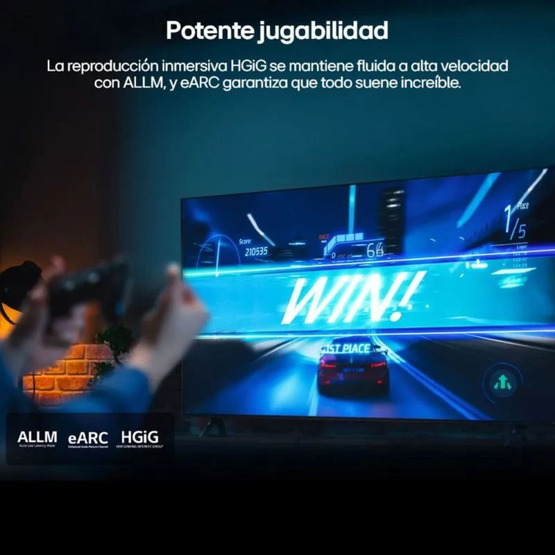 Tecnología Gaming: Compatible con VRR (Frecuencia de Actualización Variable) y ALLM (Modo Automático de Baja Latencia).