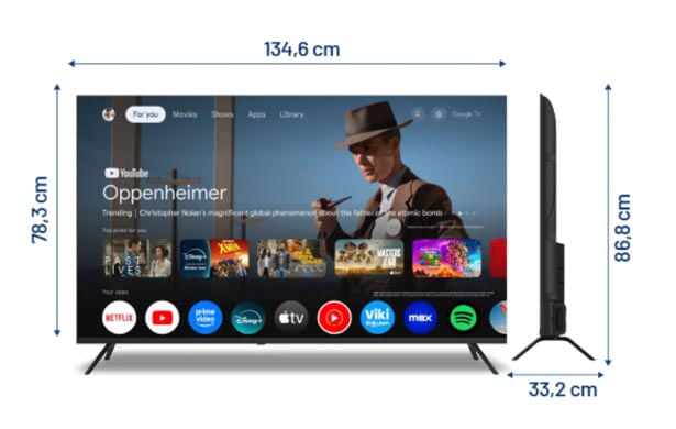 - Dimensiones sin base: 134,6 × 78,3 × 8,3 cm