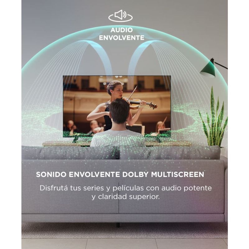 Equipado con 4 puertos HDMI 2.0 y 2 puertos USB, este Smart TV permite conectar consolas, notebooks o discos externos con facilidad.