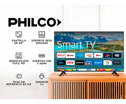 Smart TV Philco 40 pulgadas PLD40FS23CH tecnología LED con el sistema operativo Android.