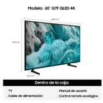Experimenta entretenimiento envolvente con el Samsung Q7F 65 QLED 4K Smart TV. Este modelo incluye el avanzado Q4 AI Processor, que mejora automáticamente la calidad de imagen etiquetando contenido en tiempo real y optimizando escalado a 4K, brillo y contraste.