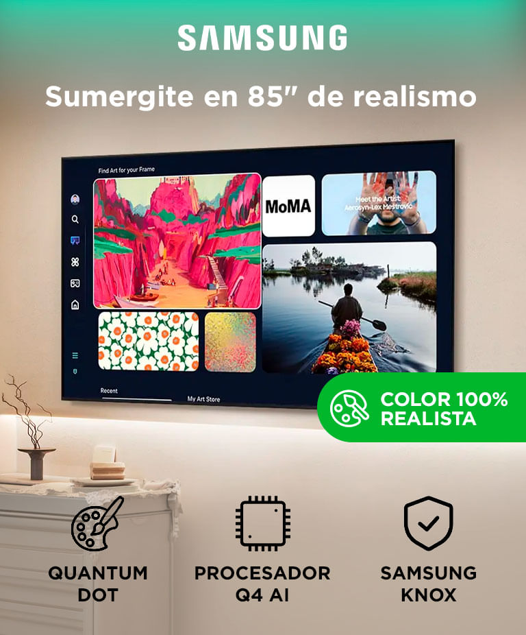 Resolución 4K con tecnología QLED para una experiencia cinematográfica real.