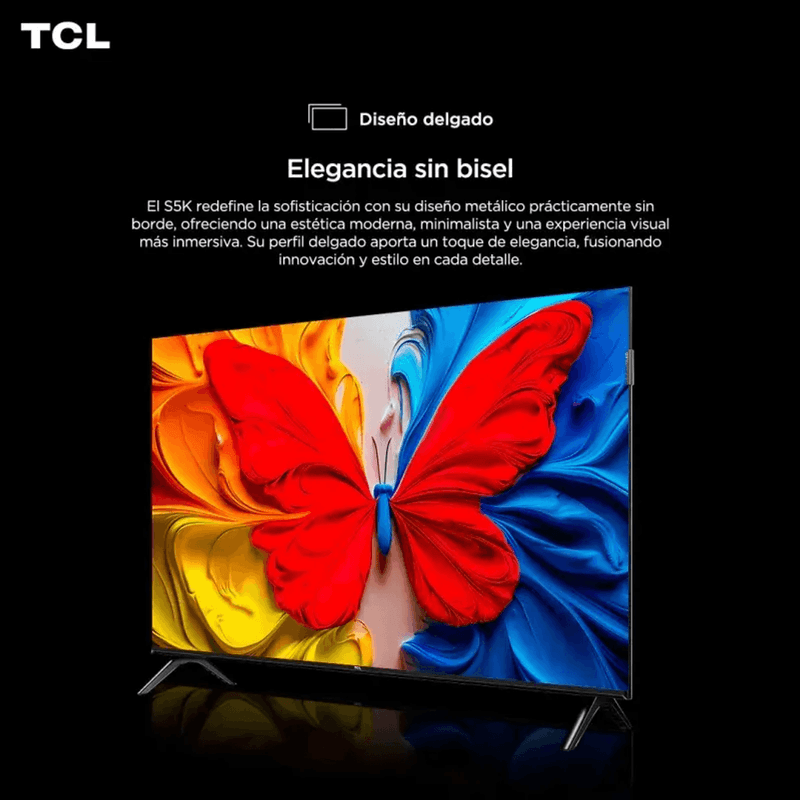 Diseño moderno “bezel‑less” con perfil delgado que combina con cualquier ambiente. Ligero y fácil de ubicar, este TV ofrece lo mejor de la tecnología smart sin complicaciones ni excesos.