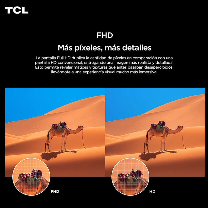 La resolución FHD duplica los píxeles de una pantalla HD, brindando mayor detalle, realismo y texturas más precisas para una experiencia visual inmersiva.