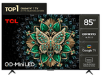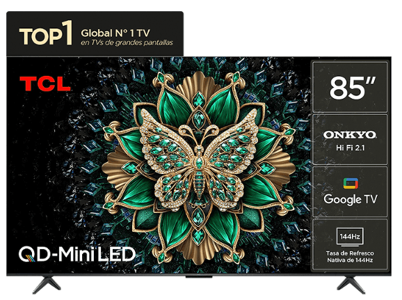 El TCL 85C6K/F redefine la experiencia visual en el hogar gracias a su tecnología QD-Mini LED combinada con Quantum Dot. Esta fusión tecnológica ofrece un control de iluminación extremadamente preciso, logrando negros más profundos, un contraste superior y más de mil millones de colores posibles. Su pantalla de 85 pulgadas con resolución 4K UHD y panel HVA mate permite disfrutar imágenes vibrantes desde cualquier ángulo, eliminando reflejos molestos y asegurando una calidad consistente sin importar la posición del espectador.
