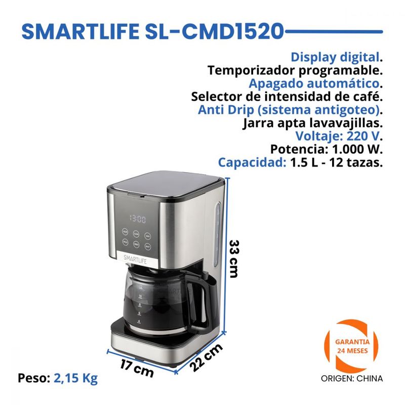 Capacidad: 1.5 L - 12 tazas.