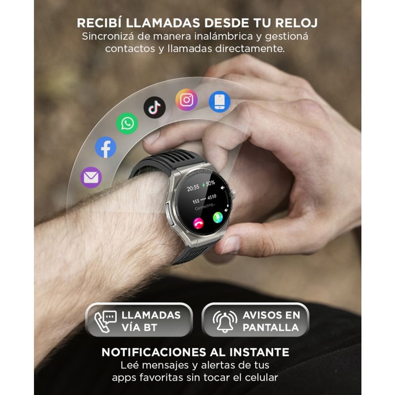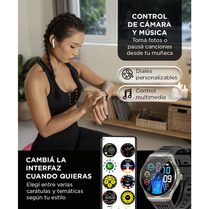 Monitoreo de salud completo: Medí ECG, temperatura, oxígeno en sangre y presión arterial desde tu muñeca. Datos sincronizables con app.