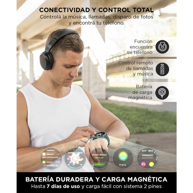 Llamadas y música desde tu muñeca: Atendé llamadas, controlá tu playlist y activá el asistente desde el reloj sin sacar el celular.