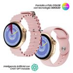 SMARTWATCH GR22GT IA ROSA GROW HOME - Pantalla táctil: 1,32" - Memoria RAM:684K+2MB - Memoria interna: 1GB - Color: Rosa - GPS deportivo - Posee Podometro. - Se pueden contestar emails. - Monitor de sueño, monitor de latidosdel corazon. Temporizador. - Soporta + de 10 lenguajes diferentes.Manual en castellano. - Control de musica por bluetooh. - Modelo GR22GT - Garantía fabricante 6 meses - Origen China