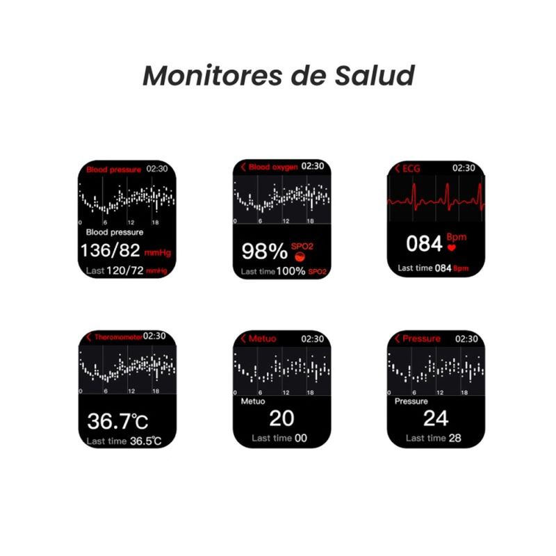 SMARTWATCH GROW HOME GR27 PRO ROSA CON PROTECTOR DE PANTALLA -Pantalla táctil: IPS 1,9" -Resolución pantalla: 240*283 pixel -Velocidad procesador: Jieli AC6954 - 240Mhz -Memoria RAM: 196KB+32MB -Memoria interna 1MB+64MB -Sensores Medición de temperatura corporal, medición temperatura exterior, oximetro, de movimiento, frecuencia cardiaca, electrocardiograma y presión arterial. -Funciones: Posee Podometro, se pueden contestar emails, monitor de sueño, monitor de latidos del corazón, temporizador, soporta + de 10 lenguajes diferentes. Control de músicapor bluetooh.. -Resistente al agua IP68 lo que permitesumergirlo 1,5 mts hasta 30 min -Bluetooth 3.0+5.1 -Batería de Polímero de Litio 210mAh -Duración de la batería: Aprox 1 día - dependiendo el uso, cantidad de aplicaciones en simultaneo, bluetooh, etc -Color: malla rosa ocean con carcaza rose gold -Modelo GR27 PRO -Dimensión 45*38*10.7 mm -Peso 50 grs -Garantía fabricante 6 meses -Origen China